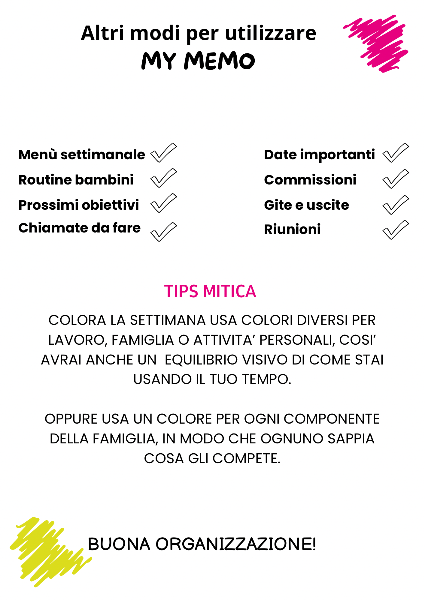 lista della spesa, obiettivi e menù settimanale. Perfetto per l'organizzazione di tutta la famiglia!